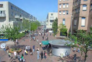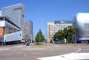 Recent zijn enkele grootschalige winkelgebieden gerealiseerd. Deze gebieden worden gekenmerkt door een grote variatie aan functies. Er wordt gewinkeld, gewerkt en gewoond in deze gebieden. Daarnaast zijn er recreatieve voorzieningen in verschillende soorten en maten, zoals enkele concertgebouwen. Gedifferentieerde bouwvolumes bepalen het beeld.